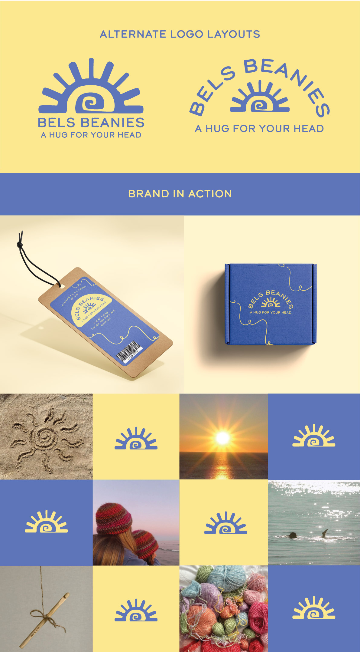 To create a logo and style guide for the small business ‘Bels Beanies’. The design must reflect the client and the target audience and therefore must be beachy, playful and bright while still connecting to the brands purpose being a crochet brand.
